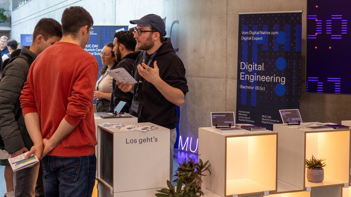 Bei MUC.DAI dreht sich alles um Digitalisierung und Künstliche Intelligenz – in den interdisziplinären Studiengängen, in Projekten mit echten Anwendungsfällen oder in unserer Forschung. Unsere Studierenden werden zu Digital Experts, um wegweisende Lösungen für die komplexen Herausforderungen der Gesellschaft zu finden.